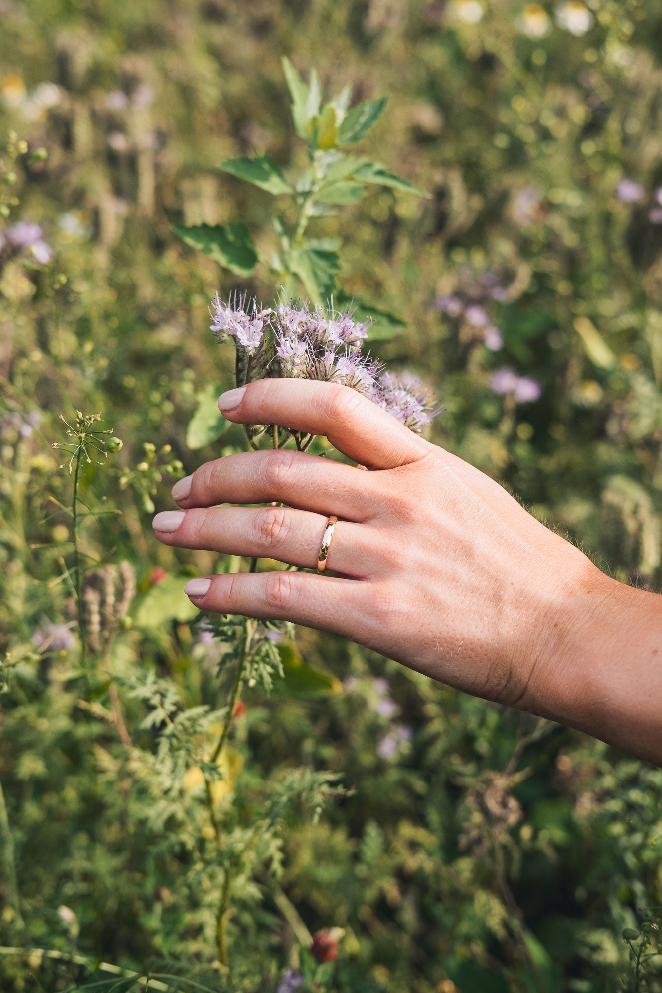 Ob allein oder als Vorsteckring getragen, dieser Ring besticht in seiner zarten Eleganz. In 3mm Breite vereint dieser goldene Schatz ein klassisches und filigranes Design.