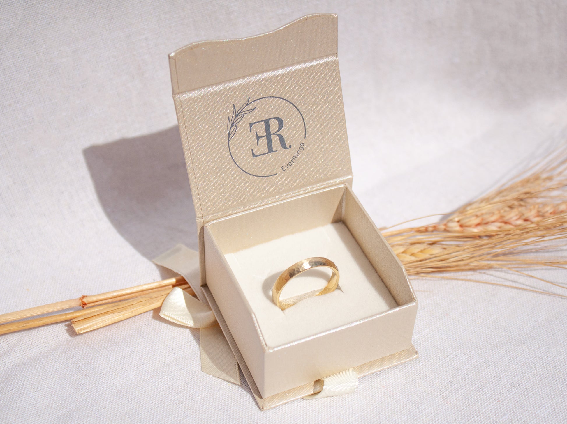 Eure Ringe werden in einer schönen Ringschatulle zu euch gesendet, sodass diese geschützt und hübsch verpackt bei euch eintreffen können.